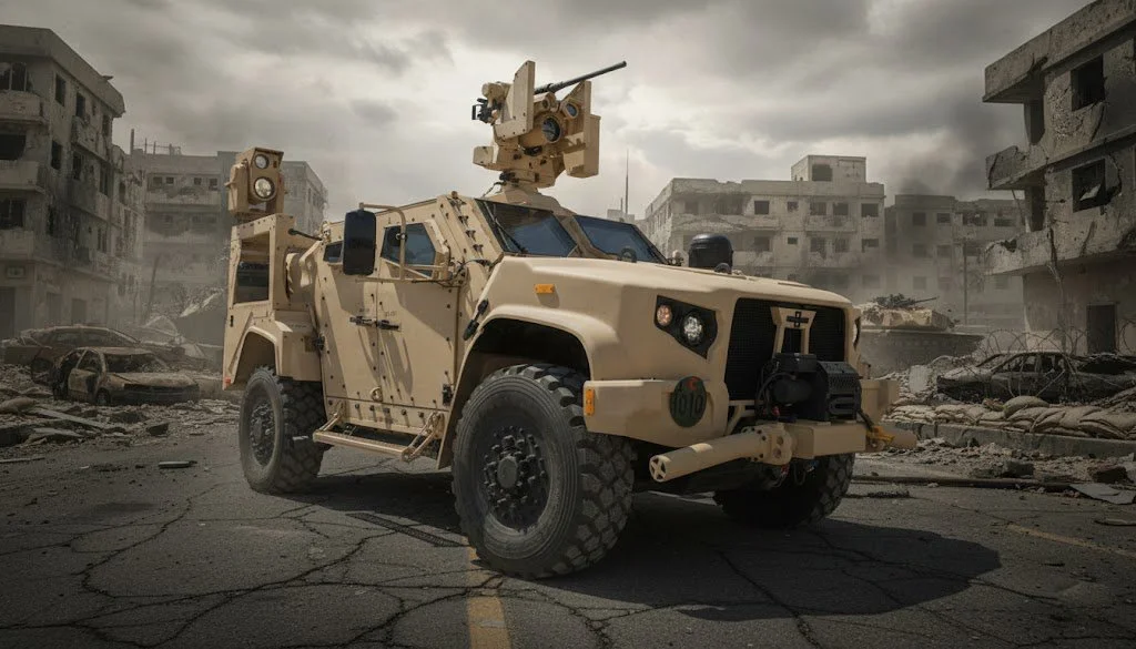 AI-driven convoys navigate complex scenarios with minimal human input, while full self-driving tech enhances safety and allows more personnel or equipment per vehicle—showcasing future military mobility innovations.